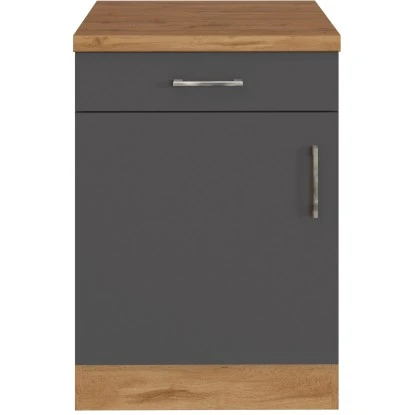 Der Held Möbel Unterschrank Sorrento misst B x H x T: 50 cm x 85 cm x 60 cm, 1 Tür, 1 Schubkasten. 1 Einlegeboden, Metallgriff