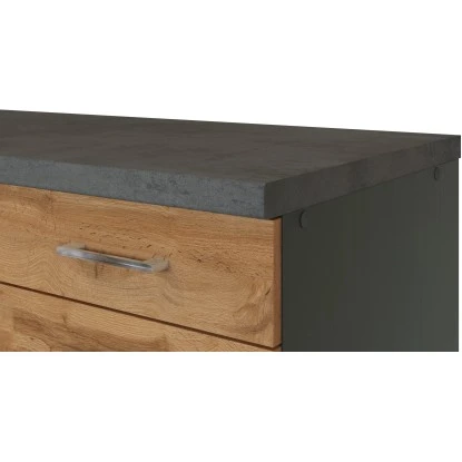 Die Küchenserie Sorrento besticht durch ihre 4 absolut trendstarken Dekorkombinationen, in denen immer das ausdrucksstarke Eichedekor eine entscheidende Rolle spielt. Durch eine Vielzahl an Zeilen- und Winkelkombinationen, die außerdem durch eine große Auswahl an Ergänzungsmöbeln komplettiert werden, ergibt sich ein breites Spektrum an Einrichtungsmöglichkeiten. Möchten Sie Ihren Backofen lieber autark in einem Hochschrank untergebracht haben? Benötigen Sie einen großzügigen Kühlschrank mit integriertem Gefrierschrank? Lagern Sie Ihre Vorräte gern in Auszügen und Apothekerschränken? Alle Schränke sind flexibel aufzustellen und die Türen sind wahlweise rechts oder links montierbar. Entscheiden Sie selbst- hier bleiben keine Wünsche offen.