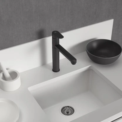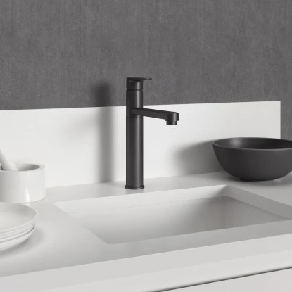 Schwarz bringt Stil und Eleganz in Ihr Bad. Mit unserer Silk Black Oberfläche setzen Sie ein Statement in Ihrem Badezimmer.
