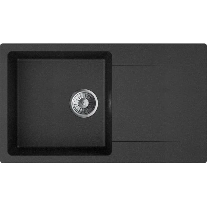 Die Einbauspüle ist aus hochwertigem Granitverbundstoff gefertigt. Dabei handelt es sich um ein wiederstandfähiges Material, das sich als stoßfest erweist. Es besticht überdies durch seine pflegeleichten und hitzebeständigen Eigenschaften. Daher können auch kochheiße Töpfe oder Pfannen auf der Oberfläche abgestellt werden, ohne dass diese leidet. Gehalten ist die Spüle in der Trendfarbe Graphit-Grau mit natürlich wirkender Optik. Ihre Montage erfolgt flächenbündig durch Einsetzen und Verkleben in einen passenden Ausschnitt. Dadurch liegen Spüle und Arbeitsplatte auf einer Ebene. Je nach Einbausituation kann die Ausrichtung von Abtropffläche und Becken frei gewählt werden.