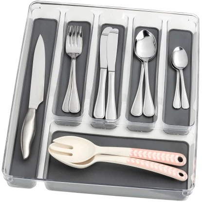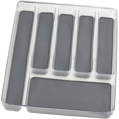 Mit dem Wenko Besteckkasten bringen Sie Ordnung in Ihre Schublade. Gefertigt aus hochwertigem grau-transparentem Kunststoff passt der Kasten zur jeder Küche. So ist Ihr Besteck stets vorsortiert und griffbereit